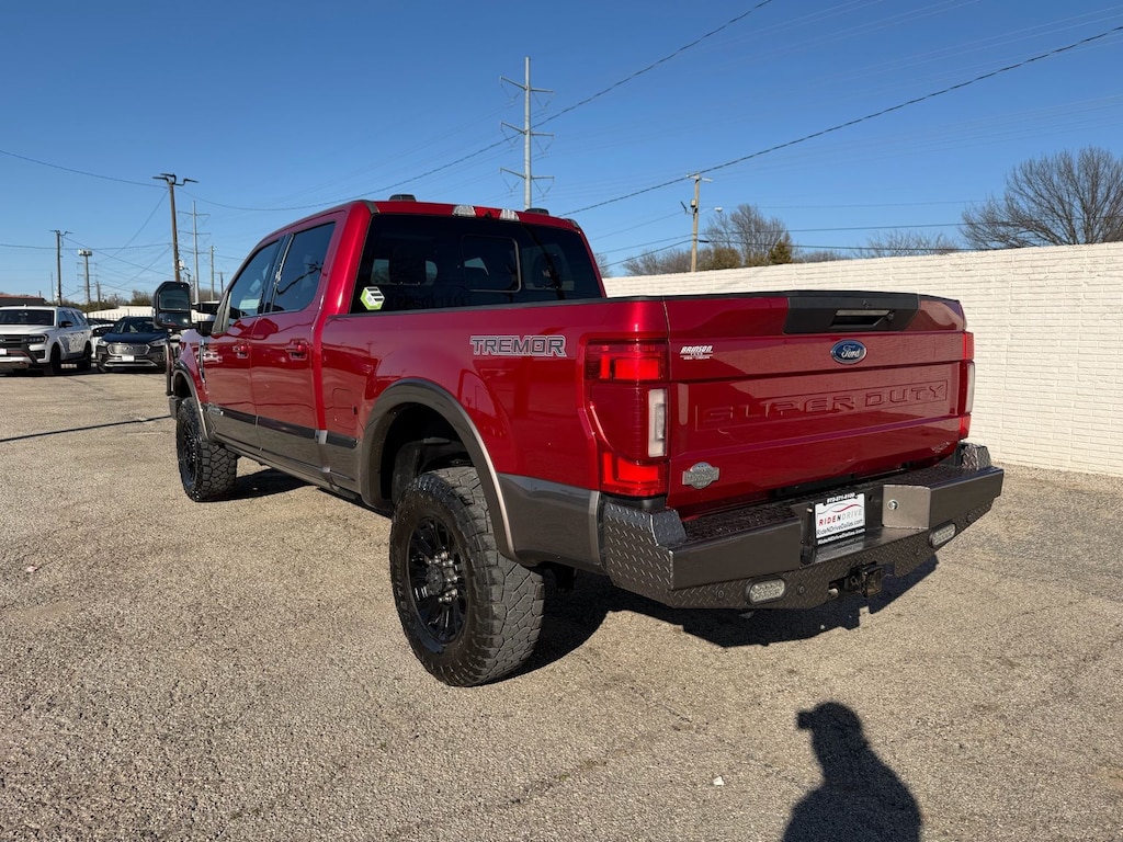 4WD. This vehicle comes with the following features and options : 5th Wheel/Gooseneck Hitch Prep Package, GVWR: 11,300 lb Payload Package, King Ranch Ultimate Package (Multi-Contour Seats, Power-Deployable Running Boards, Quad Beam LED Headlamps & LED Taillamps, Tailgate Step & Handle, and Twin Panel Power Moonroof), Order Code 710A, Tremor Off-Road Package (Body-Color Wheellip Moldings, Lane-Keeping Alert, Textured Matte Finish Off-Road Running Boards, Tremor Off-Road Decal, and Wheels: 18" Low-Gloss Black Painted Aluminum), 4WD, 10 Speakers, 110V/400W Outlet, 397 Amp Alternator, 4-Wheel Disc Brakes, ABS brakes, Active Cruise Control, Adaptive Cruise Control & Collision Warning, Adaptive Steering, Adjustable pedals, Air Conditioning, Alloy wheels, AM/FM radio: SiriusXM, Auto High-beam Headlights, Auto tilt-away steering wheel, Auto-dimming Rear-View mirror, Automatic temperature control, Brake assist, Compass, Delay-off headlights, Driver door bin, Driver vanity mirror, Dual front impact airbags, Dual front side impact airbags, Electronic Stability Control, Emergency communication system: SYNC 3 911 Assist, Exterior Parking Camera Rear, Flow-Through Console, Front anti-roll bar, Front Bucket Seats, Front Center Armrest, Front dual zone A/C, Front fog lights, Front License Plate Bracket, Front reading lights, Fully automatic headlights, Garage door transmitter, Hard Folding Tonneau Pickup Box Cover (Pre-Installed), Heated door mirrors, Heated front seats, Heated Rear Seats, Heated steering wheel, Illuminated entry, Illuminated running boards, Leather steering wheel, LED Roof Clearance Lights, Low tire pressure warning, Memory seat, Navigation System, Outside temperature display, Overhead airbag, Overhead console, Panic alarm, Passenger door bin, Passenger vanity mirror, Pedal memory, Power door mirrors, Power driver seat, Power passenger seat, Power steering, Power windows, PowerScope Trailer Tow Mirrors w/Heat, Radio data system, Radio: B&O System by Bang & Olufsen, Rain sensing wipers, Rear Parking Sensors, Rear reading lights, Rear seat center armrest, Rear step bumper, Rear window defroster, Remote keyless entry, Security system, SiriusXM Radio, Speed control, Split folding rear seat, Steering wheel memory, Steering wheel mounted A/C controls, Steering wheel mounted audio controls, SYNC 3 Communications & Entertainment System, Tachometer, Telescoping steering wheel, Tilt steering wheel, Tough Bed Spray-In Bedliner, Traction control, Trip computer, Turn signal indicator mirrors, Unique King Ranch Leather 40/Console/40 Front Seats, Upfitter Switches (6), Variably intermittent wipers, Vehicle Safe by Console Vault (Pre-Installed), Ventilated front seats, Vinyl Floor Covering, and Wheels: 18" Bright Machined Cast Aluminum **AT RIDE N DRIVE SHOP HUNDREDS OF PRE-OWNED VEHICLES THAT ARE LIKE NEW & MOST ARE STILL UNDER FACTORY WARRANTY. ASK ABOUT OUR NATIONWIDE SHIPPING, CERTIFIED PRE-OWNED PROGRAM, & LEASING OPTIONS**